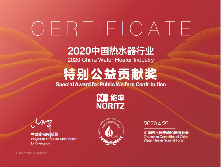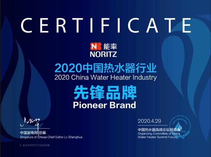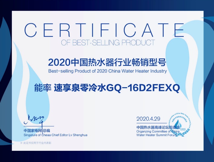 能率两款型号零冷水产品获2020中国热水器行业大奖