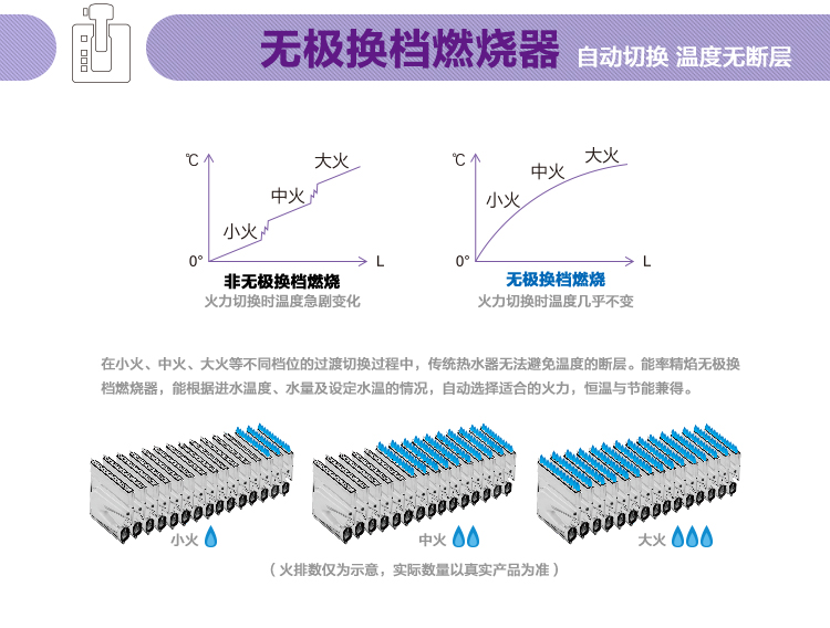 温度控制方式:电子式燃气比例控制方式+水量伺服器控制方式