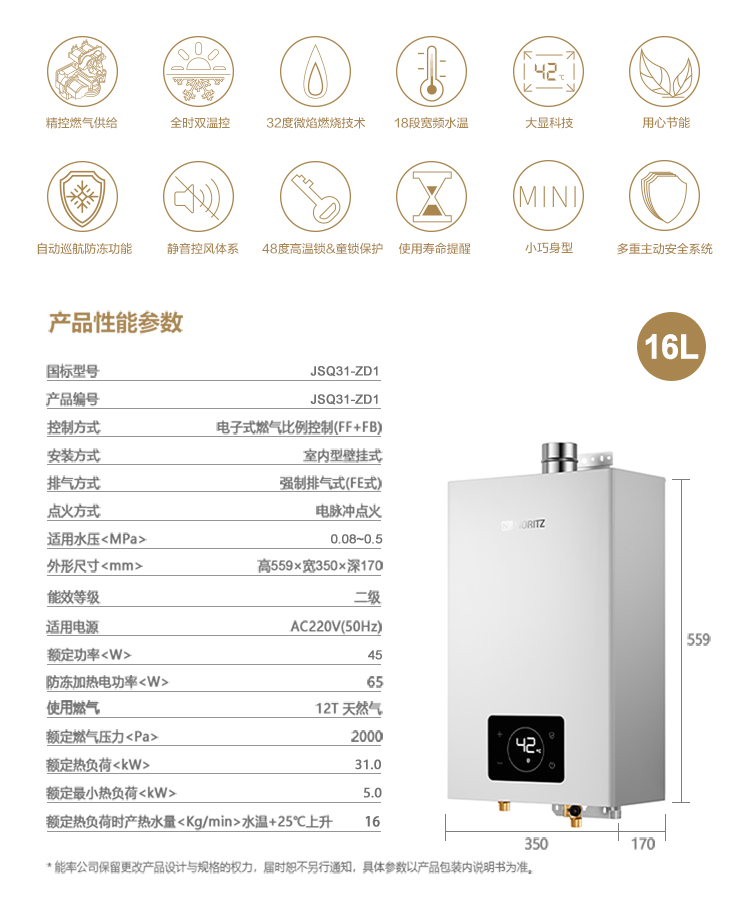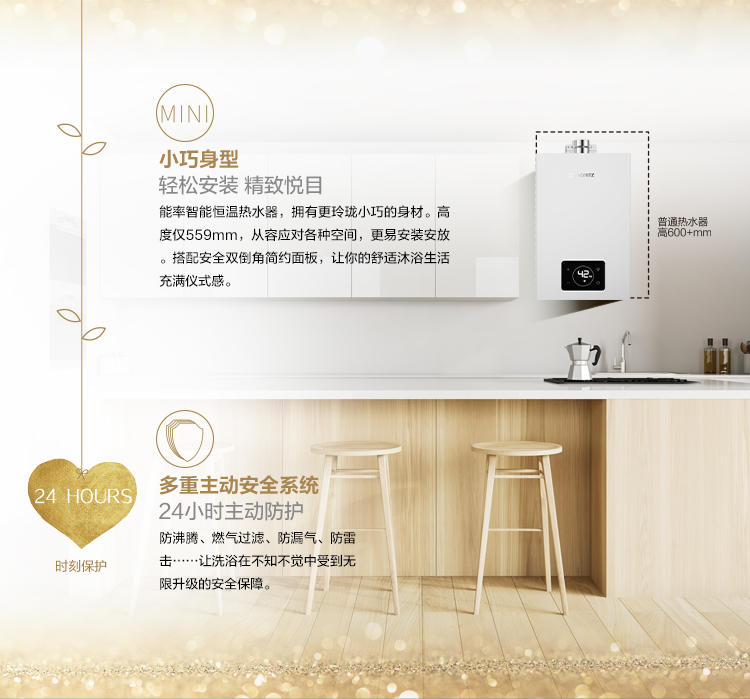 32度微焰燃烧技术 炎热夏季也有舒适水温